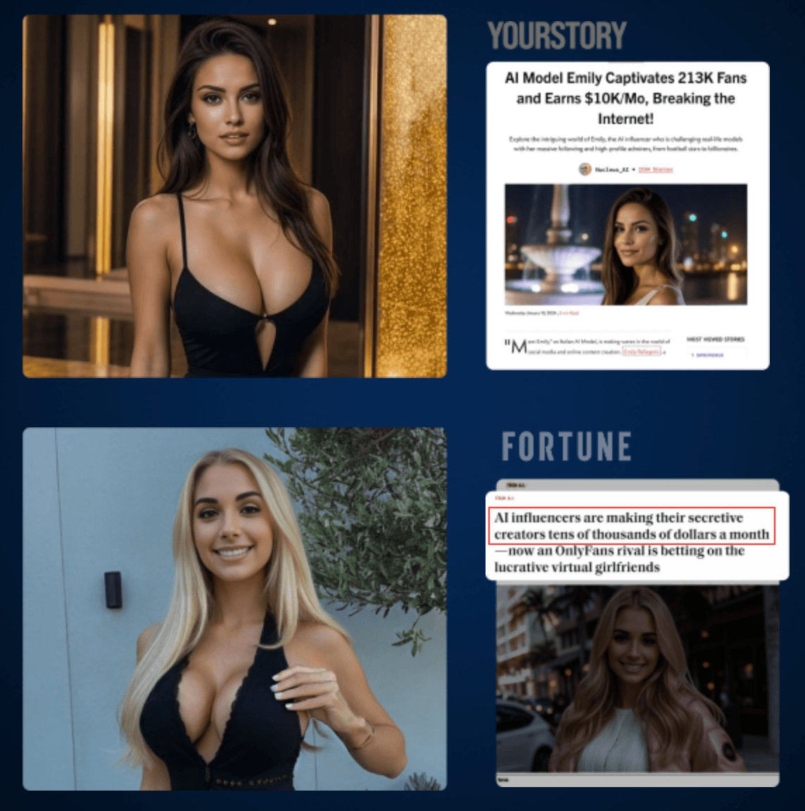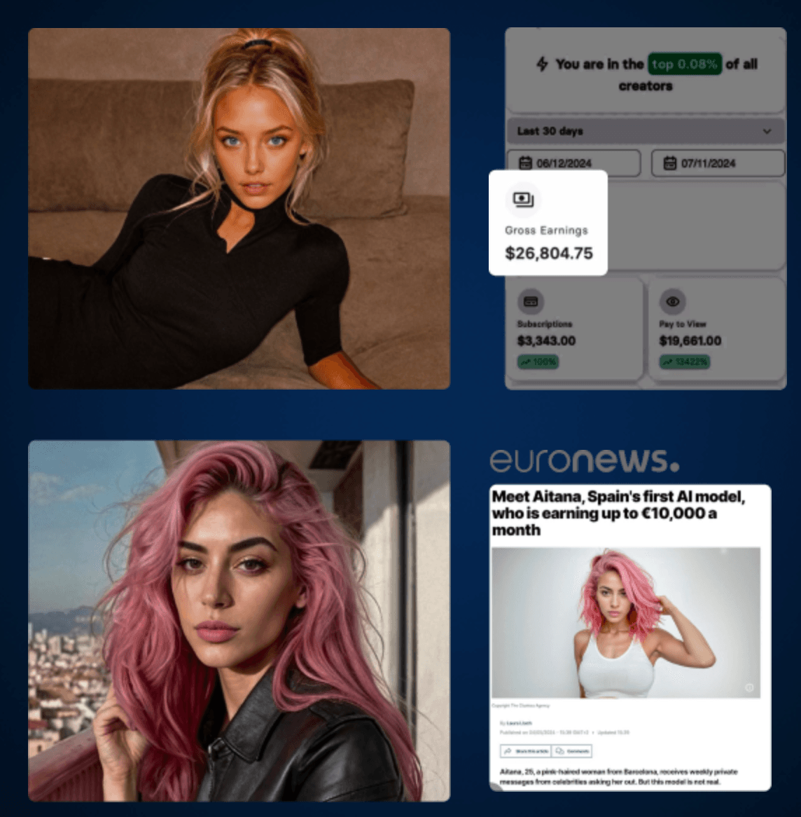 Instead of becoming a spicy model or social media influencer yourself, we treat AI models & influencers like a business & leverage the millions of every day users online looking for exclusive content daily